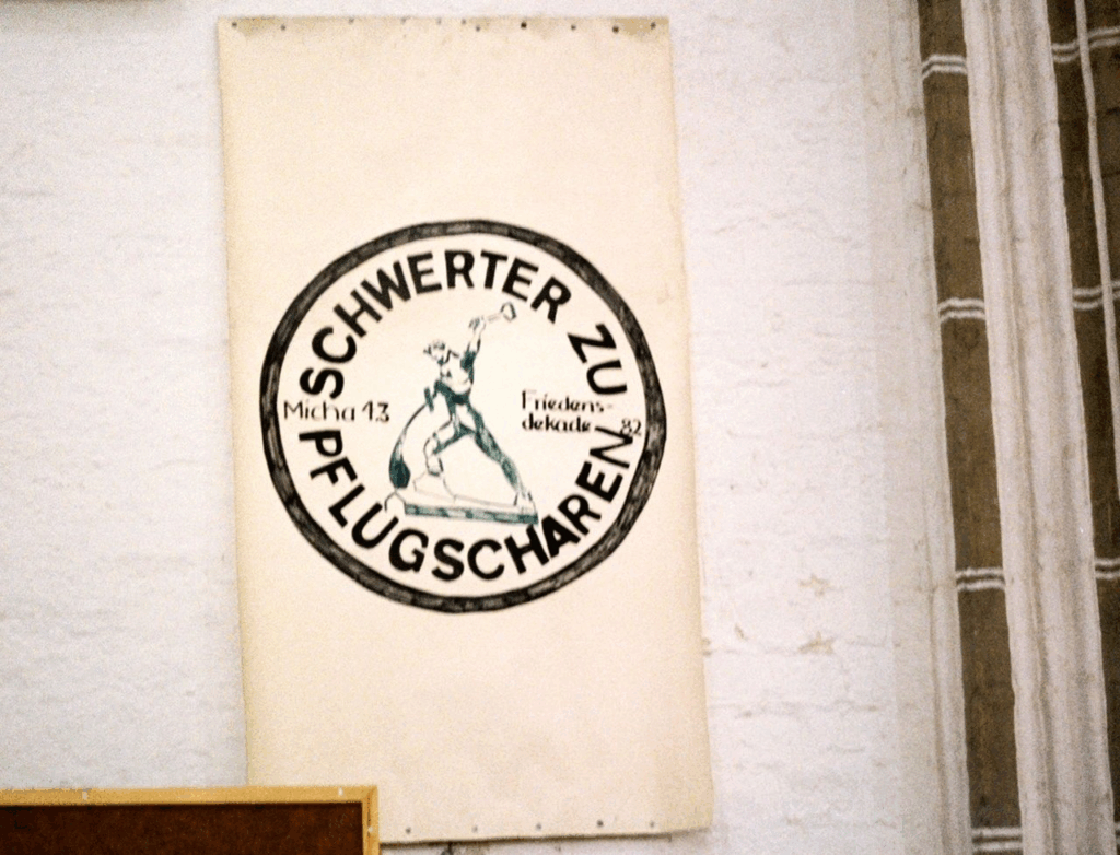 Das Friedensthema wird für die Führung der DDR zunehmend zum Bumerang. Auch unter dem schützenden Dach der Kirche entstehen in den 1980er Jahren Friedensgruppen und -initiativen, die sich gegen die Militarisierung der DDR und für das Recht auf Wehrdienstverweigerung engagieren. Dabei rücken auch Fragen der Menschenrechte und der massiven Umweltprobleme in der DDR in den Mittelpunkt.